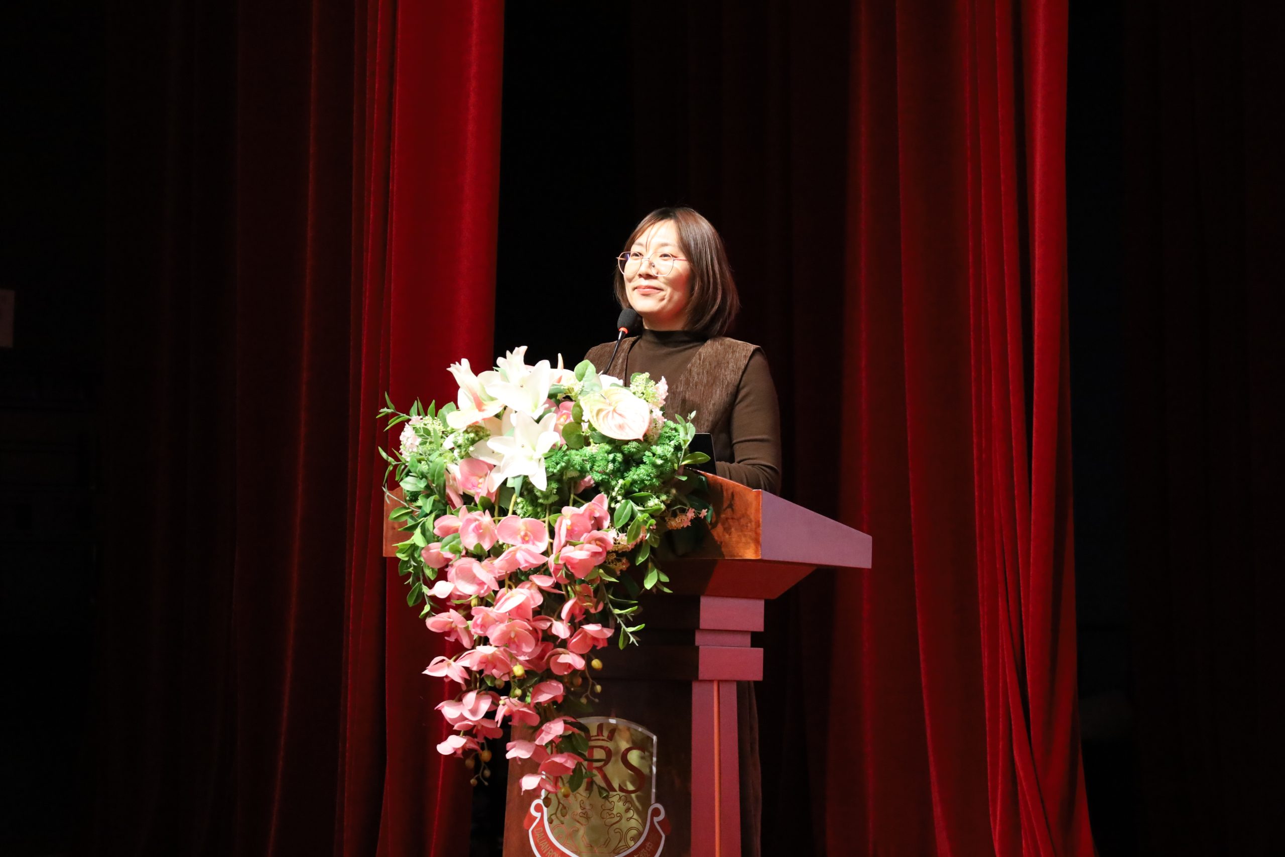 大连王府高级中学党支部书记胡学敏作 《国之脊梁 精神灯塔》 报告。通过故事和史料,再现钱学森传奇人生,诠释其科学精神与家国情怀,「钱学森班」 不仅是一个荣誉称号,更是传承科学家精神、培育时代新人的重要载体。
