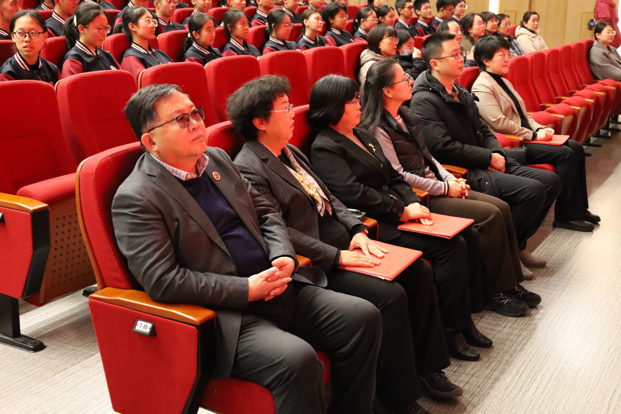 11 月 19 日,大连王府高级中学 「钱学森班」 授牌仪式暨钱学森精神学习大会在致远楼礼堂隆重举行。会议由高一年级主任杨秀君主持,嘉汇教育集团及学校领导、全体高一年级师生齐聚一堂,共同见证这一重要时刻。